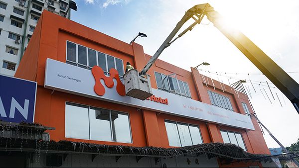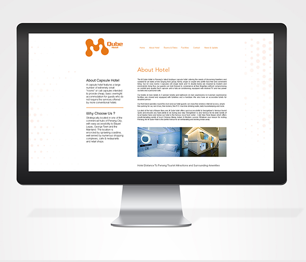 Corporate identity design for M Qube Hotel, A budget capsule hotel in Penang, Malaysia.