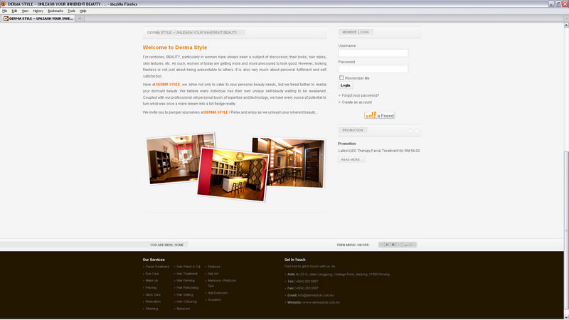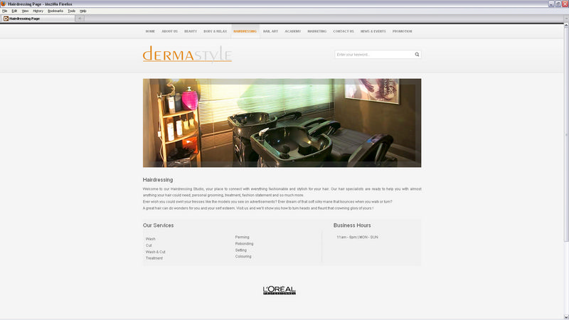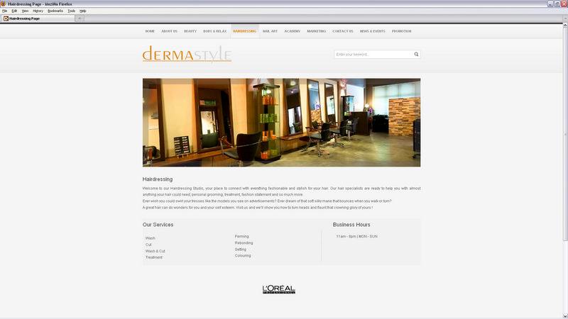We have recently completed the design and development of the web site for Derma Style. Please visit http://www.site.com.my/ to find out more about our web site portfolios.