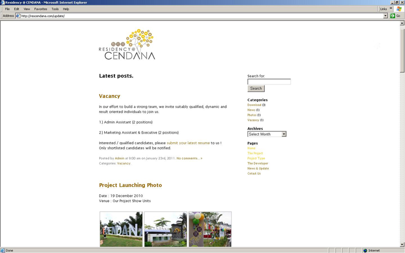 We have recently completed the design and development of the web site for RESIDENCY @ CENDANA – a property project development by Metrio Group of Companies. Please visit http://www.site.com.my/ to find out more about our web site portfolios.