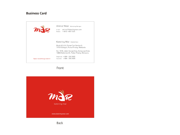 September 15th, 2011A corporate identity design for Katering Mar, one of the well-known Malay food caterer in Penang, Malaysia