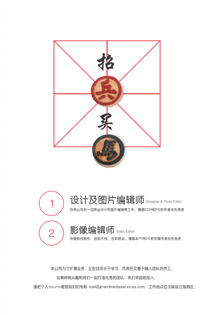 May 1st, 2017Please e-mail your resume along with your best work(s) in pdf/jpeg format to mail@grandmediaservices.com.